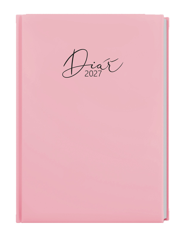 Týdenní diář v nepoškrabatelném laminu s parciálním lakem v pastelově růžové barvě. Je vyráběný ve formátu A5, má velký prostor pro poznámky a plánování.