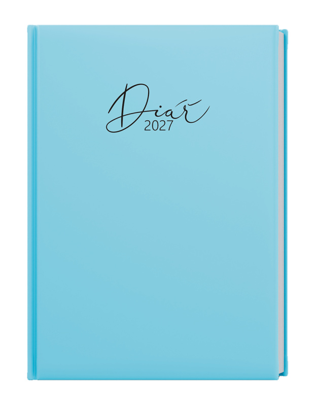 Trendy a praktický týdenní diář v pastelově modrém odstínu, potažený nepoškrabatelným matným laminem s parciálním lakem. Diář má velký prostor pro poznámky a plánování.