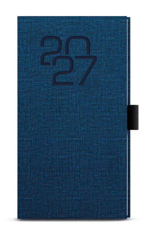 Kapesní týdenní diář z příjemného materiálu v modré barvě a s moderní ražbou roku. Trendy a praktický doplněk do každé kapsy. Diář má velký prostor pro poznámky a plánování.