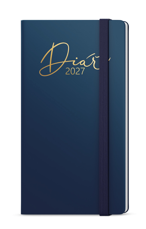 Kapesní týdenní diář v tmavě modré barvě a luxusní zlatou ražbou je malý pomocník pro Vaše plánování.