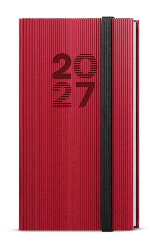 Kapesní týdenní diář v červené barvě ze strukturovaného materiálu a s gumičkou. Jednoduchost, která neomrzí. Moderní doplněk do každé kapsy. Diář má velký prostor pro poznámky a plánování.