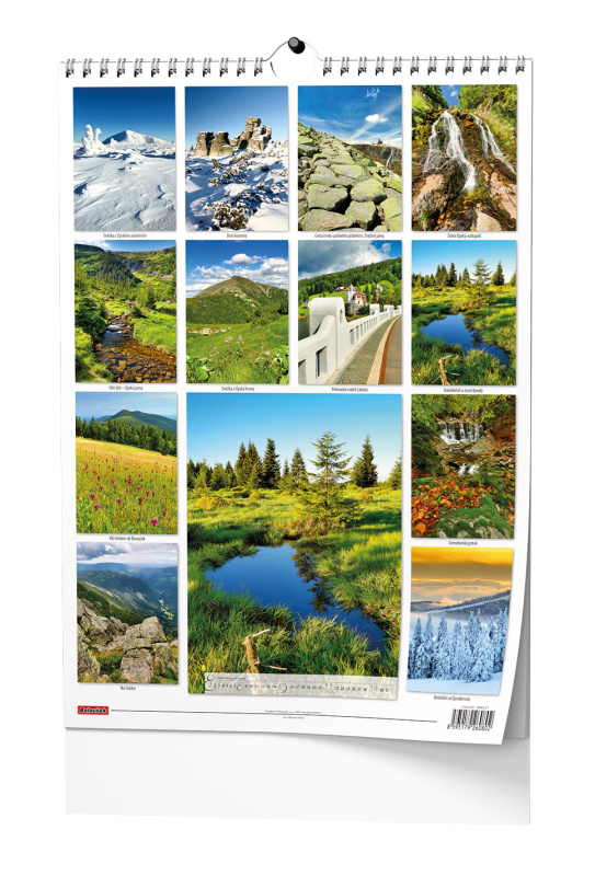 Nástěnný kalendář s obrázky Krkonoš.