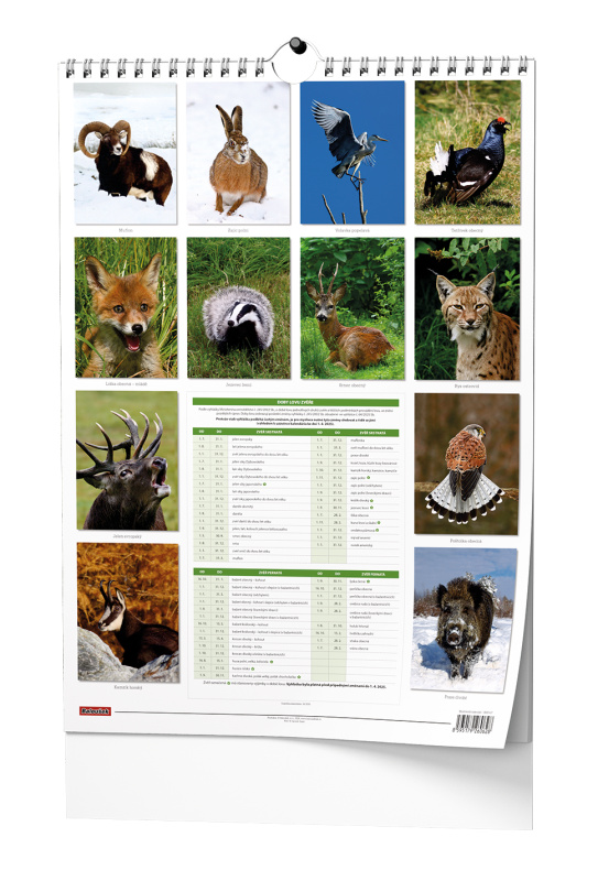 Nástěnný kalendář pro vášnivé myslivce s informacemi o době lovu zvěře.