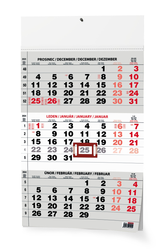 Praktický nástěnný kalendář s tříměsíčním kalendáriem a posuvným jezdcem vhodný do Vaší kanceláře.