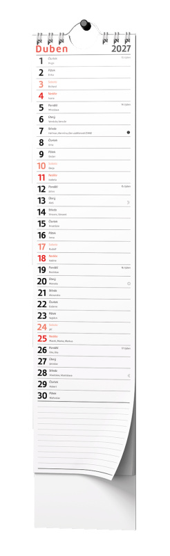 Pracovní nástěnný bez obrázkový kalendář ve formátu kravaty.