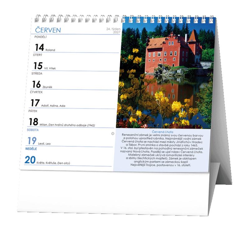 Ideální kalendář za ideální cenu s týdenním kalendáriem a v praktickém formátu s informacemi o hradech, zámcích a památkách naší země.