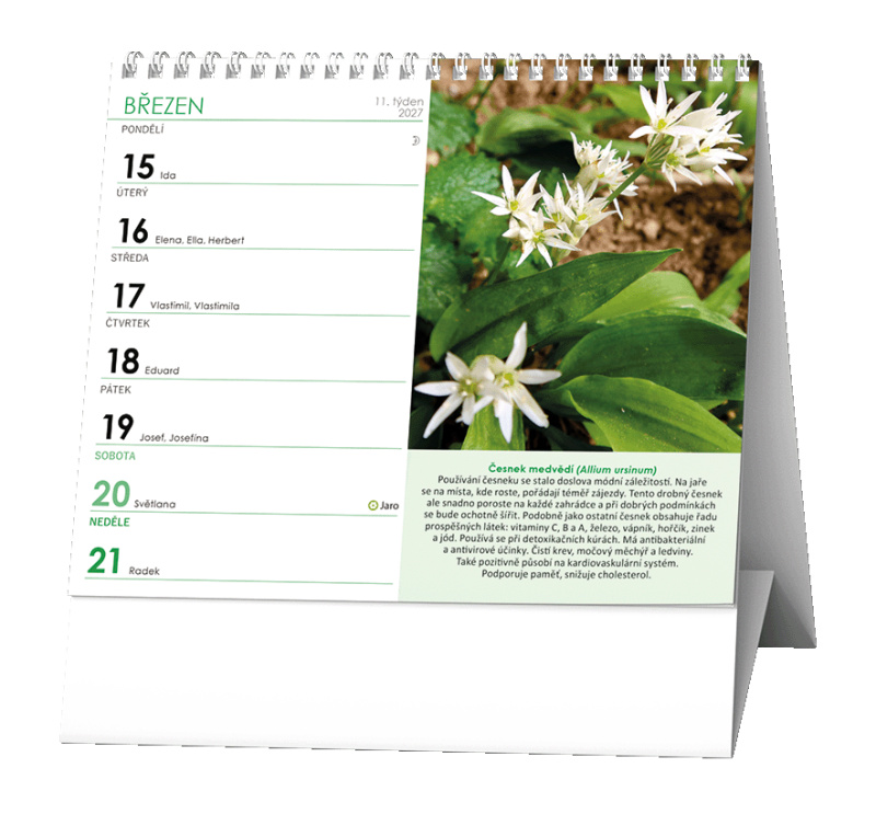 Ideální kalendář za ideální cenu s týdenním kalendáriem a v praktickém formátu, s informacemi o léčivých rostlinách.