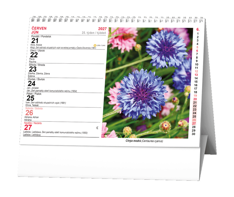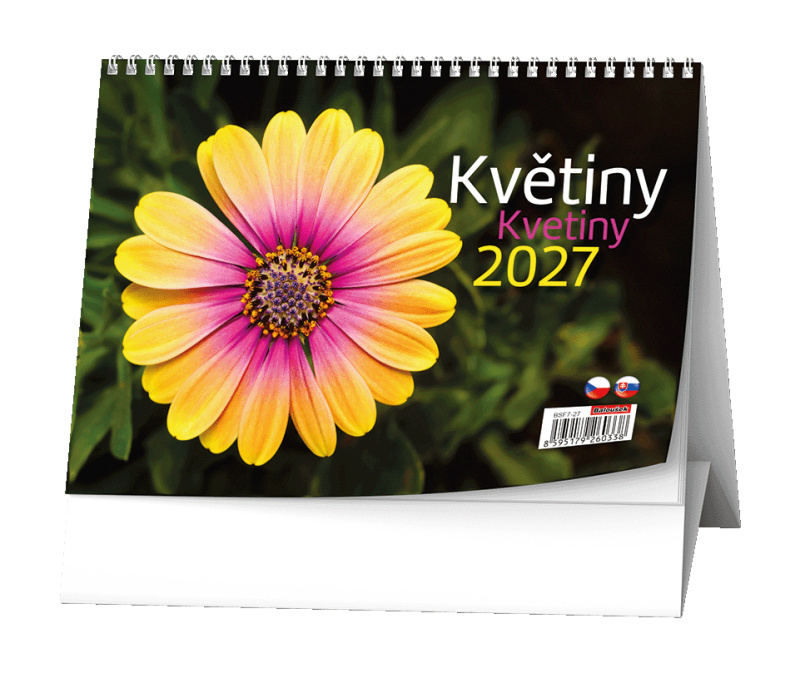 Stolní kalendář s týdenním kalendáriem s obrázky květin.