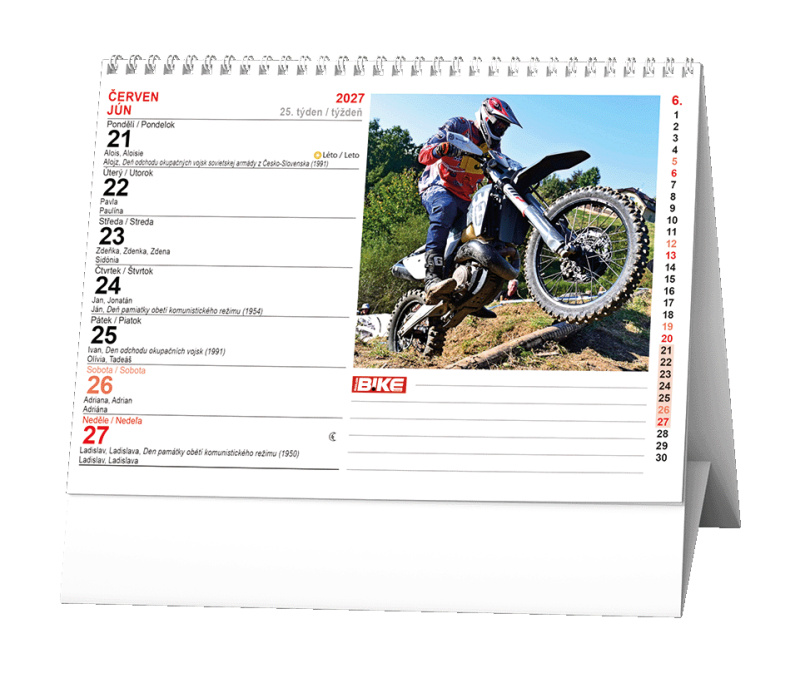 Stolní kalendář s týdenním kalendáriem pro milovníky rychlých motorek.