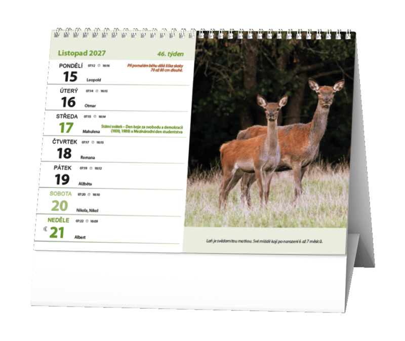 Stolní kalendář s týdenním kalendáriem pro všechny myslivce.