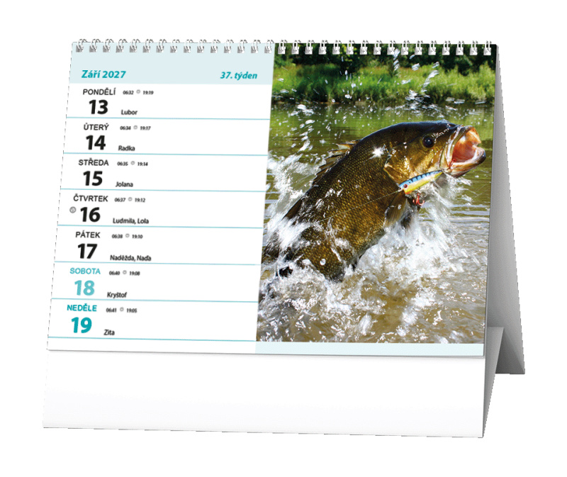Stolní kalendář s týdenním kalendáriem pro všechny rybáře.