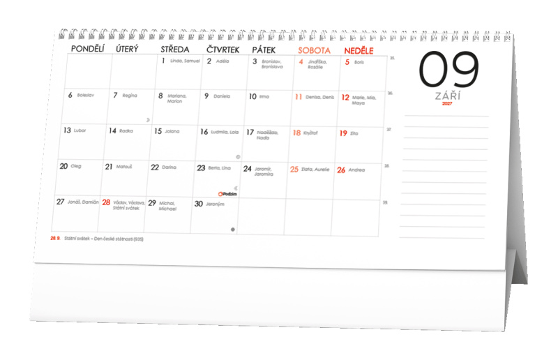 Výjimečný stolní kalendář s přehledným měsíčním kalendáriem a prostorem na poznámky.
