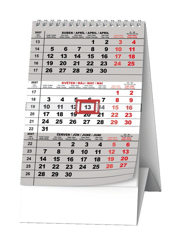 Praktický stolní kalendář s tříměsíčním kalendáriem a posuvným jezdcem. Vhodný právě na Váš stůl.