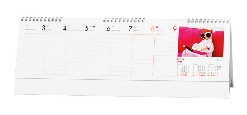 Pracovní kalendář s týdenním kalendáriem v zajímavém formátu a s vtipnými obrázky oživí Váš stůl.