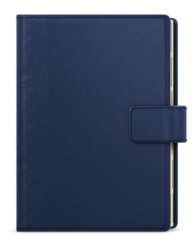 Elegantní denní diář ve formátu A5 se stylovým a znovupoužitelným obalem v modré barvě. Praktické vnitřní uspořádání nabízí množství přihrádek na vizitky, poutko na tužku a bezpečné magnetické zavírání. Diář bude působit luxusně a profesionálně – ideální volba pro práci, podnikání i osobní organizaci.