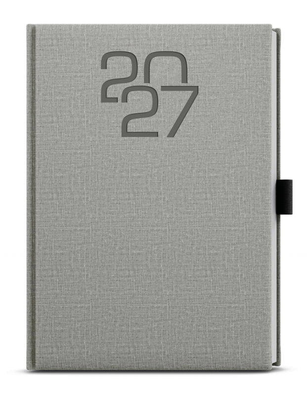 Decentní denní diář z příjemného materiálu v šedé barvě a s moderní ražbou roku. Denní diář A5 Vám pomůže efektivně naplánovat každý den.