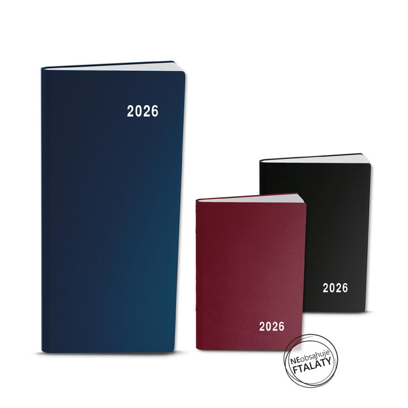 Materiál jemný hladký materiál PVC,potisk roku bílou barvou, šitá vazba V1, ofset, 70g/m2