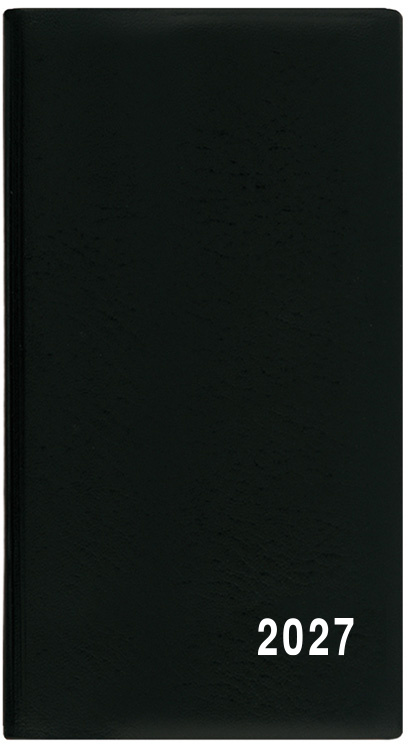 Jednoduchý a praktický měsíční diář vyrobený z jemného hladkého materiálu s polomatným povrchem černé barvy. Ideální pro každého, kdo si oblíbil měkkou šitou vazbu.