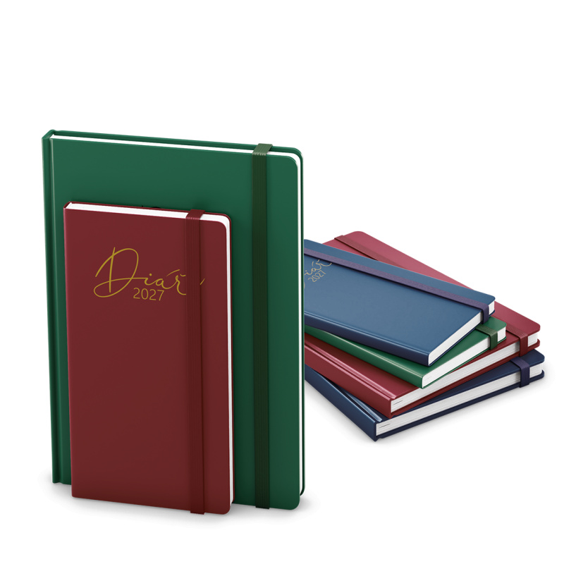 Týdenní diář A5, jehož potah nese moderní barvu a povrch je potažený nepoškrabatelným laminem, nese efektní zlatou ražbu. Týdenní diář Vám pomůže plánovat celý týden.