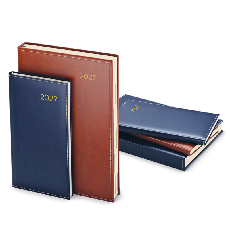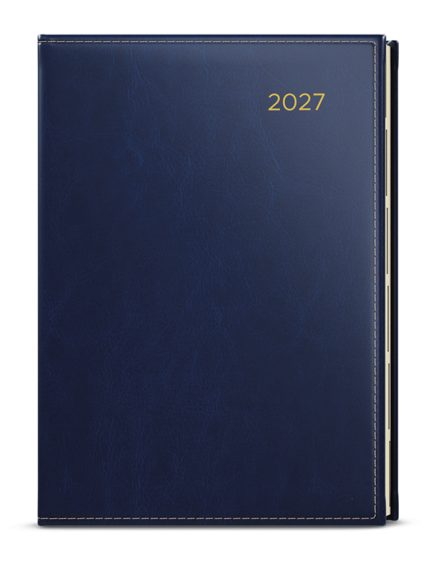 Týdenní diář vyrobený z modré koženky s moderní zlatou ražbou roku. Diář, který povýší jakoukoli Vaši schůzku.