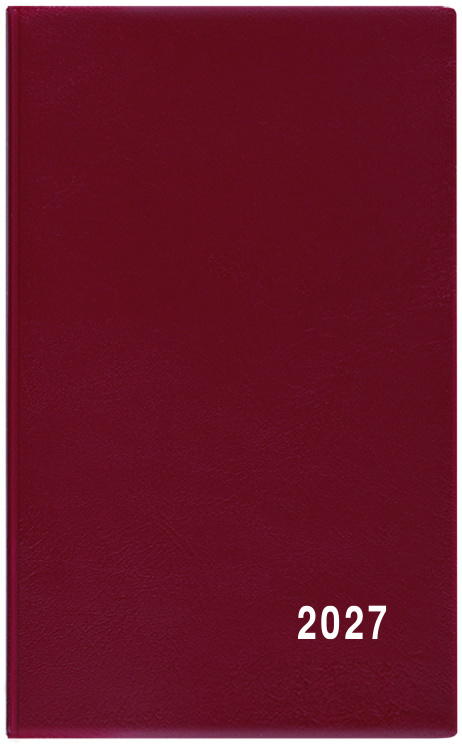 Jednoduchý a praktický týdenní diář vyrobený z jemného hladkého materiálu s polomatným povrchem v barvě bordó. Ideální pro každého, kdo si oblíbil měkkou šitou vazbu.