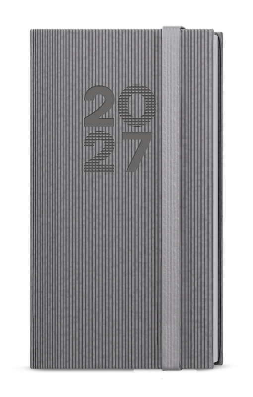 Kapesní týdenní diář v šedé barvě ze strukturovaného materiálu a s gumičkou. Jednoduchost, která neomrzí. Moderní doplněk do každé kapsy. Diář má velký prostor pro poznámky a plánování.