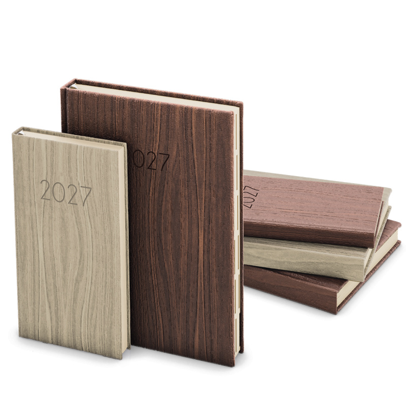 Kapesní týdenní diář s přírodním motivem dřeva s ražbou. Je vyráběný z jemně strukturovaného materiálu, má velký prostor pro poznámky a plánování.